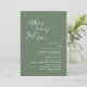 Meddela elegant din lyckliga framtid med vår moderna och klassiska bröllopsinbjudan för en intim festlig middag, med korttiteln "Inget fancy, bara kärlek". Skräddarsydd för par som fortsätter sin kärlekshistoria, hittar detta kort en perfekt balans mellan sofistikering och charm och sätter tonen för en oföliggbar dag. Med en modern samtida typsnittsdesign och vit text på salvia grön bakgrund ger det en tidlös elegans till er speciella dag, detta kort är ett stilfullt uttryck för er varaktiga kärlek. Detta inbjudningskort kan modifieras för att passa era behov för bröllopsbrunch, lunch, middag eller fest.