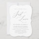 Detta är det Inget fint, bara kärlek, bröllopsflykt-meddelande/ inbjudningskort, i Mörkgrå, typsnitt. Perfekt för att inbjuda din familj och vänner att fira denna viktiga fest.