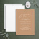 Skapa den perfekta inbjudan för ett avslappnat bröllop eller efter-förlovningsfirande med denna moderna, trendiga, rustika terrakotta-färgade design, med handskrivna typsnitt. Kontakta formgivaren för matchande produkter. Tack så jättemycket för att du stöttar vårt lilla företag, vi uppskattar det verkligen! Vi är så glada att du älskar denna design lika mycket som vi gör, och vi vill gärna bjuda in dig att vara en del av vår nya privata Facebook-grupp Bröllopsplaneringstips för upptagna brudar. Gå med för att få det senaste om försäljning, nya utgåvor och mer! https://www.facebook.com/groups/622298402544171 Copyright Anastasia Surridge för Elegant Invites, alla rättigheter förbehållna.