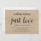 Vacker Inget fint, bara kärlek, Vigsel utan bröllopsfest inbjudan / fest inbjudningskort, i modern rustic stil, med träd bakgrundstema. Detta är perfekt för din bröllopsmottagning och efterbröllopsfirande. Lägg till dina detaljer i matchande typsnitt / bokstäver.