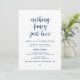 Vacker modern casualt manus, i marinblå script typsnitt, vigsel kungörelse, inbjudningskort (inget fint bara kärlek). Detta är perfekt för din bröllopsmottagning och efterbröllopsfirande. Lägg till dina detaljer i matchande typsnitt / bokstäver.