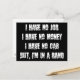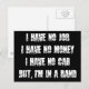Jag har inget jobb, jag har inga pengar, jag har ingen bil, men jag är i ett band. Svartvit. Tryckt på t-shirts, hookar, klistermärken, party, samlarföremål m.m.