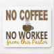 Kaffe-Älska pastorn, detta ens för dig! Dela ett leende eller två, med de runt om dig med vårt roligt inget kaffe ingen Workee från t-skjortor, gåvor och dräkt för denna pastor som presenterar en ångande kopp av kaffeuppsättningen inom en djärv orientering av ` kaffe-färgad' text. Göra perfekt gåvaidén för det hård-till-få-för pastor på ditt listar!