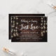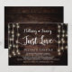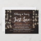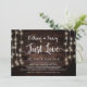 Vackert Inget pråligt, bara kärlek, Bröllop vigsel meddelande / Inbjudan, i Rustik lantlig trä, Strängljus design. Perfekt för er bröllopsfest och efterföljande firande. Lägg till era detaljer i matchande typsnitt.