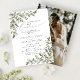 Skapa den perfekta inbjudan för ett avslappnat bröllop, en bakgårdsbröllop eller efter-elopement firande med denna moderna, trendiga, rustika eucalyptus grönska vattenfärg blomsterdesign, med handskrivna typsnitt. Baksidan av inbjudan visar ert favoritförlovningsfoto. Kontakta designern för matchande produkter. Tack så jättemycket för att ni stöttar vårt lilla företag, vi uppskattar det verkligen!
