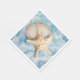 Seashell och stjärnfisk på en vacker blå strand med vitt havsskum. Underbar för avsvärtning och andra pappra hantverk.