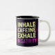 "Inhale Caffeine, Exhale Negativitativitet" Två-Tonad Mugg