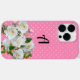 Färgfull grafisk polka dots i rosa och vit dekorerad med fotoblommor med början stor storlek.