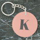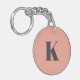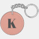 Enkelt, snyggt anpassningsbar inledande brev monogram-nyckelkedja i modern minimalistisk typografi i mörk grått på persikorosa. En anpassningsbar eller ett tillbehör till perfekten med personlig beröring!
