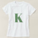 Enkelt, snyggt anpassningsbar initialt brev-monogramkvinnors t-shirt i modern minimalistisk typografi i sage grönt. En anpassningsbar i perfekt eller mode-tillbehör med personlig beröring!