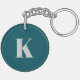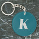 Enkelt, snyggt anpassningsbar inledande brev monogram-nyckelkedja i modern minimalistisk typografi i kitt grått på tealblått. En anpassningsbar eller ett tillbehör till perfekten med personlig beröring!