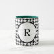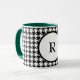En klassisk svart och vit houndduk mönster, med en enda början, på denna färg-kombinationdryck mugg. Välj mellan 9 färg för handtag och inuti. Ändra enkelt inledande med hjälp av mallen som anges. Finns även i 15-tumsfack med fem färg att välja på. Gör en perfekt till familj, vän, chef, lärare eller gåva själv. Se "Om den här produkten" på sidan för mer information.