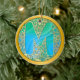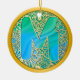 Initial Monogram M Christmas - Gold, Teal & Blue Julgransprydnad Keramik