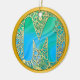 Initial Monogram M Christmas - Gold, Teal & Blue Ceramic Ornament. Adorn your tree with a touch of elegance this holiday season with the Luxury Gold Filigree Monogram 'M' Christmas Ornament. This stunning ceramic decoration features a vibrant teal and blue agate-style swirl background, overlaid with an intricate, laser-cut-like gold mandala and floral lace design.