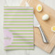 Initial Monogram & Name Pastel Pink Green Striped Kökshandduk