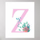 Initial Z Monogram Bokstav Rosa Turkos Ocean Affis Poster