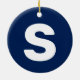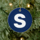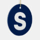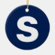 Initialbokstav | Marinblå Enkel Elegant Julgransprydnad Keramik