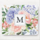 Vi presenterar vår Musmatta med initialbokstav och monogram i vattenfärg blå rosa blommor. Med vattenfärgskonst med blommande hortensia, peonia och ros i pastellfärger. Personliggör den med ditt monogram för en extra speciell touch!
