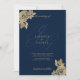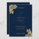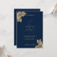 Ett elegant trendig marinblått monogram initialer snyggt romantiskt marinblått och guld romantiskt blommigt bröllopsinbjudningar.