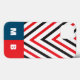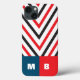 Coola grafik i stripe mönster, marin, röd och svart med stort initialer.