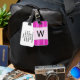 Initialt + Tunt magenta- och rosarandmönster Bagagebricka