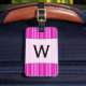 Denna bagagemärkredesign presenterar ett mönster av tunna randar färgade olikt skuggar av färger lik magenta och rosor. Den presenterar också ett initialt brev för beställnings- namn i en djärv stilsort inom ettfärgat område (med några krökt kanter) på bekläda och skräddarsy kontakten specificerar på baksidaen.