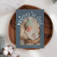 Elegant och modernt födelseattest för jultema med en text som säger "inslagna i kärlek" med stjärnor. Det här är ett födelsemärke för julhelgerna! Lägg till foton, födelsestatus och ett meddelande! Bakgrunden är skifferblått.