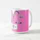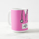 Kreativets doktor uppskattning, födelsedagspresent eller studenten-gåva, mugg, med rosa sjukhusbuskar och illustration av ID-märkre. Så här anpassar du redigeringstexten för att lägga till namn.