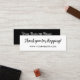 Kartläggning av svartvitt inmatningskort för produktförpackningen. Tack för att du köper i ett svart penselskript. Lägg till kontaktinformationen på baksidan med ditt företag namn i ett vitt penselskript mot svart bakgrund.