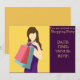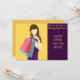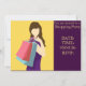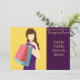 En söt och stilfull inbjudan som passar för en damernas dag ut eller shoppingfest eller möhippa shoppingspree. Denna stilfulla inbjudan har en funkig grafisk mode shopping tjej mot en ljus gul senap och lila funkig bakgrund. Texten är helt anpassningsbar för att inkludera personliga detaljer.