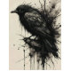 A lone crow commands the scene, perched with quiet intensity as ink-like energy bursts around it. Its sharp gaze and bold form capture a balance of control and chaos, embodying mystery, intelligence, and the raw spirit of a creature both watchful and untamed.