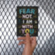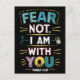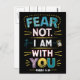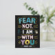 Ett vykort med ord fruktar inte, jag är med dig i ett fet och lugnande teckensnitt. Ord är omgivet av mjukt pastel färg och ömtålig blommigt, vilket skapar en känsla av fred och säkerhet.