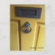 En enkel gult med en traditionell Irish Claddagh-dörrknapp och mail slot. Bilden togs i Galway, Irland. Lämpligt vykort för att skicka en enkel anteckning till en vän eller älskad.