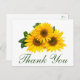 Skicka solsken! Den här charmerande Tacken för vykort för blommigt har klara solrosor av gult med löv av grönt som markeras mot en grå vit bakgrund. Tack för att du har postkort är det ekonomiska alternativet till att ta emot hälsningskort när du vill skicka en snabb tacksedel. Tack-vykort är underbara för många tillfälle.. Personliga användor Bröllop/party/möhippa- och babyduschar Företag - roligt sätt att tacka klienter/kundpresenter - skicka tack för godhet Andra solrosprodukter och presenter som du kan njuta av.. com