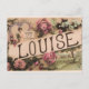 Fransk Bonne Fete-kort! Brevkortet har en trädgård i mitten som visar namn Louise och är förskönat med Ro.