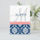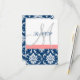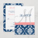 Koral- och marinblått Bröllop OSA-kort. Layout Design efter Elke Clarke ©. Grafik licensierad för använda. Inbjudan till OSA Monogram Namn Damask i personligt bröllp. Välj Anpassa om du vill ändra färg, pappra och naturligtvis personliga uppgifter