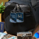 Inledande Namn-skript för marinblått Guld-agate i Bagagebricka