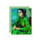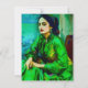 En AI-genererad porträtt av en inåtriktad kvinna i en grönt klänning