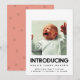 Modern och snyggt fotokort för att tillkännage nyfödd bebis födelse i världen. Fullt anpassade med baby bild, namn, födelsestatistik och andra uppgifter. Redigerbar bakgrund för färg och anpassade med prickad bakgrund.