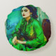 En AI-genererad porträtt av en inåtriktad kvinna i en grönt klänning