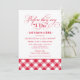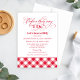 Tänd grillen och fira det framtida paret med denna roliga "Innan de säger ja - låt oss ha en grillfest"-inbjudan till repetitionsmiddag i klassisk röd färg. Den svängande röda skrivstilstypografin och den kraftiga röda randiga rutan ger denna design en festlig, lantlig picknick-stämning. All text är helt redigerbar för att anpassa dina evenemangsuppgifter. Ett bra val för en sommar- eller fjärde juli-helgbröllopsrepetitions-grill.