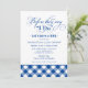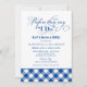 Denna djärva och glada "Innan de säger jag gör — låt oss ha en BBQ" rehearsal middagsinbjudan har en slående royalblå script typografi och en klassisk royalblå gingham-kant. Den rena vita bakgrunden håller designen skarp och modern medan gingham lägger till en avslappnad, festlig charm. All text är fullt redigerbar för ditt evenemang. Perfekt för en sommarrepetition middag BBQ i trädgården eller parken.
