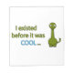 En rolig dinosaurier i grönten, med ett vänligt utseende och ett lustigt budskap: jag existerade innan det var coola. Detta är ett skämt som hänvisar till att dinosaurier levde före istiden och även ett underbart sätt att visa någon hur coola och klok du är.