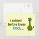 En rolig dinosaurier i grönten, med ett vänligt utseende och ett lustigt budskap: Jag existerade innan det var coola. Detta är ett skämt som hänvisar till att dinosaurier levde före istiden och även ett underbart sätt att visa någon hur coola och klok du är.