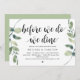 Modern Rustik Grönska Eukalyptus,, svart script temafogad inbjudningskort (med kortets titel: Innan vi gör det, äter vi middag!). Det är perfekt för din förfest firande middag, före din stora dag. Lägg till dina detaljer i matchande svart teckensnitt / bokstäver.