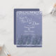 Vinterbröllopsblått och vitt gräs träd vid sjö med snö gouache och vattenfärgskonst före middagsinbjudningar till bröllop. Anpassa med din egen repetitionsplats, brider och brudar namn och svara på detaljerna. Matchande bröllop-produkter och andra färg-alternativ som finns i lager. © Originalmålning och -design av Sarah Trett www.sarahtrett.com för www.mylittleedenweddings.com