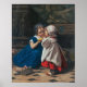 "First Lesson in Music" (ca. 1861–1897) by L. Lubrichon, lithographed by W. Harring, presents a charming and educational moment between two young girls. The scene depicts an older girl gently placing a musical instrument to the lips of a smaller girl, as if introducing her to the world of music and her first music lesson. The younger girl stands with a sense of curiosity and excitement, ready to begin her musical journey. This piece captures the innocence and enthusiasm of childhood, as well as the nurturing guidance from the older sister. The artwork, published by L. Prang & Co., reflects the 19th-century American style of portraying the purity and joy of youth, while also emphasizing the importance of learning and discovery.