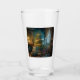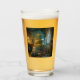 En digital målning av en dekorerad fir träd inomhus. Take away mugg i glas
