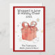 "Insvept i kärlek och julglädje julkort – Festiv röd gåvboll akvarell hälsning.
