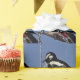 En gullig hackspett som sitter på en snöig gren, för blå himmel